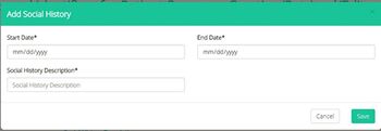 For the healthcare provider to add a new “social history”, the description from the menu of the following figure must be completed.